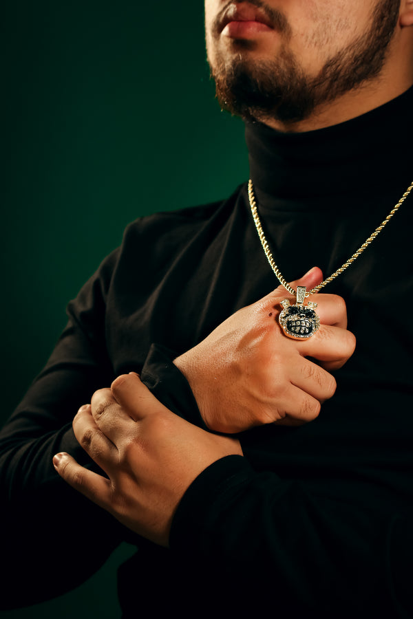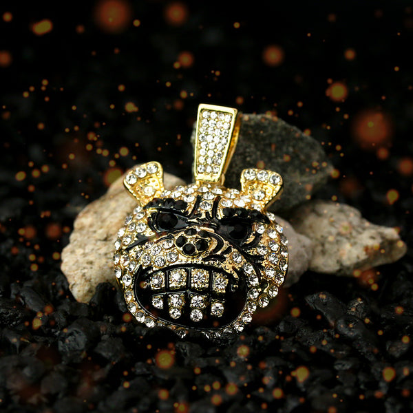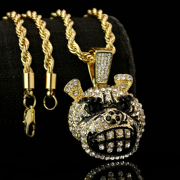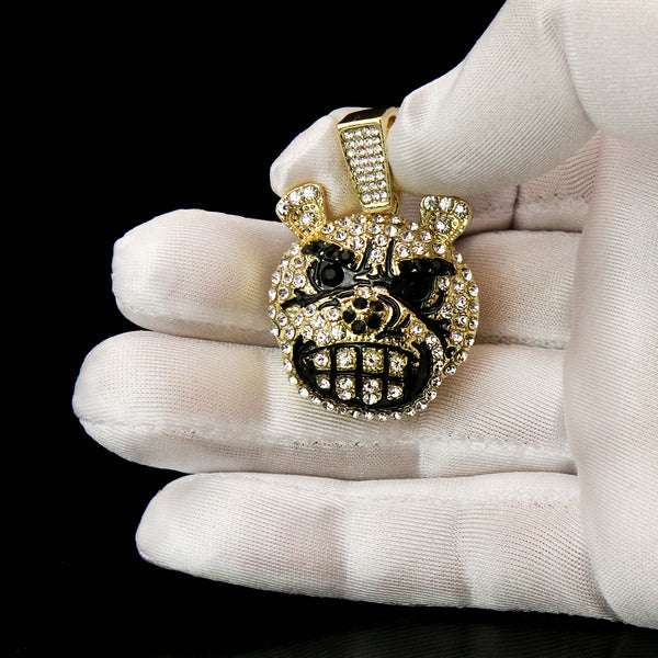 Dog Face Iced Pendant 14K Gold 24" Inch 4mm Rope Choker Chain