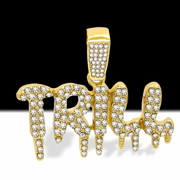 Hip Hop Bling 14K Gold Filled Necklace Pendant 14K Gold Filled Iced Out Drip TRILL Hip Hop Pendant with 4mm 24" Rope Chain Gold Filled Over Brass Makes this Necklace Look...