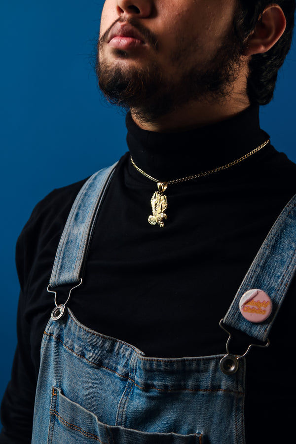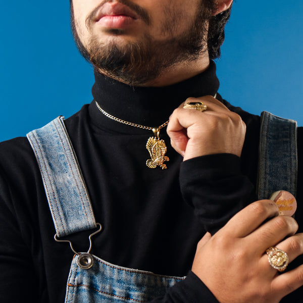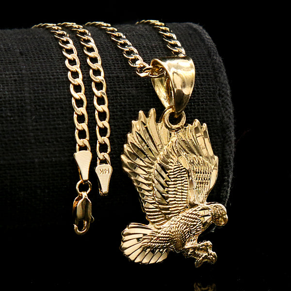 Eagle Diamond Cut Pendant Cuban Choker Chain 14k Gold Plated