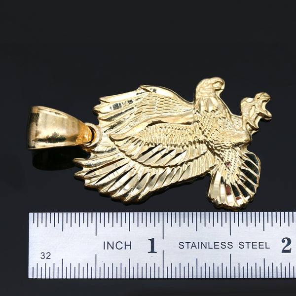 14K Gold FilledĀ EagleĀ Pendant Gold Filled Over Brass Makes this Necklace Look & Feel as a Real Gold Piece Elegant Pendant Diamond cut edges Color: Gold Pendant Size: - 1" x...