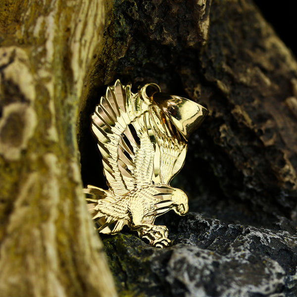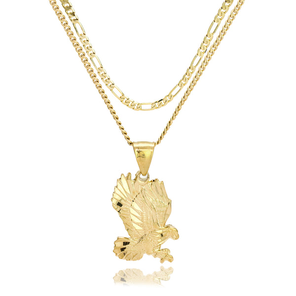14K Gold FilledĀ EagleĀ Pendant Gold Filled Over Brass Makes this Necklace Look & Feel as a Real Gold Piece Elegant Pendant Diamond cut edges Color: Gold Pendant Size: - 2" x...