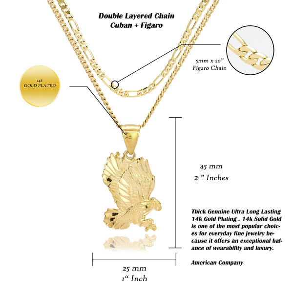 Eagle Diamond Cut Pendant Cuban / Franco Choker Chain 14k Gold Plated