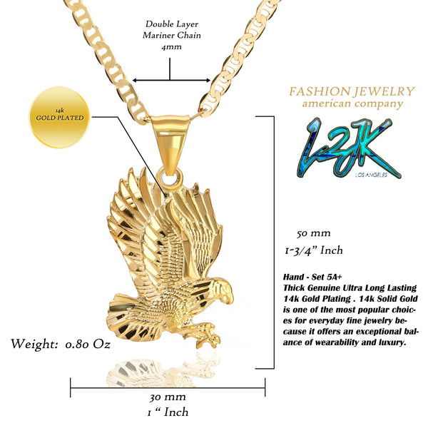 Eagle Pendant Mariner Chain 20" Gold Plated