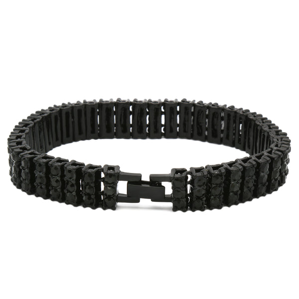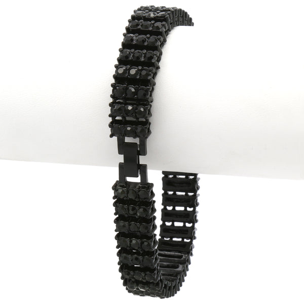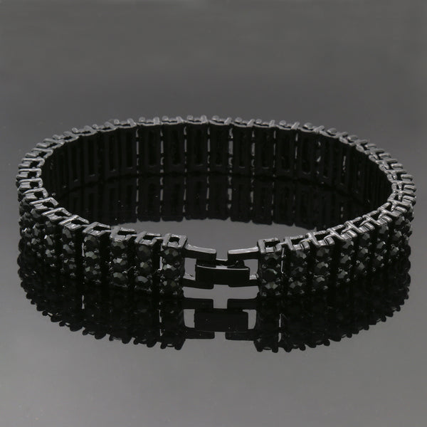 Elegant BLACKĀ Filled FULLY Iced Out TENNIS Bracelet. Tarnishing Free "Life Time Guarantee" on Air Condition. High-impact 14kĀ BLACK Plating over Brass. Lustrous Cz Finish in front of every link. Carefully interlocked...