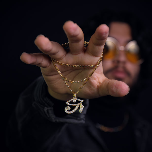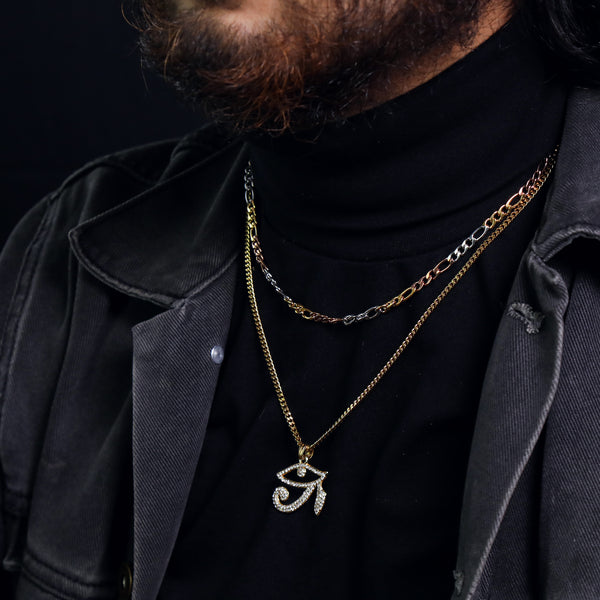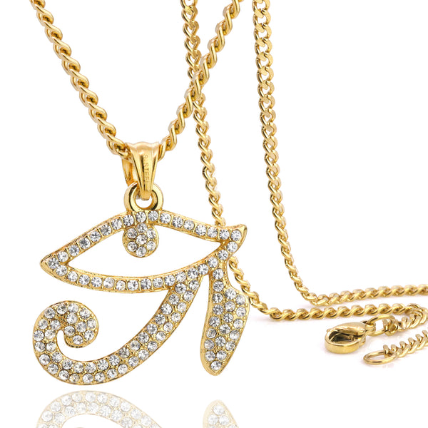 Eye Of Raw Pendant 24" Cuban Chain Hip Hop Style 18k Gold Stainless Steel