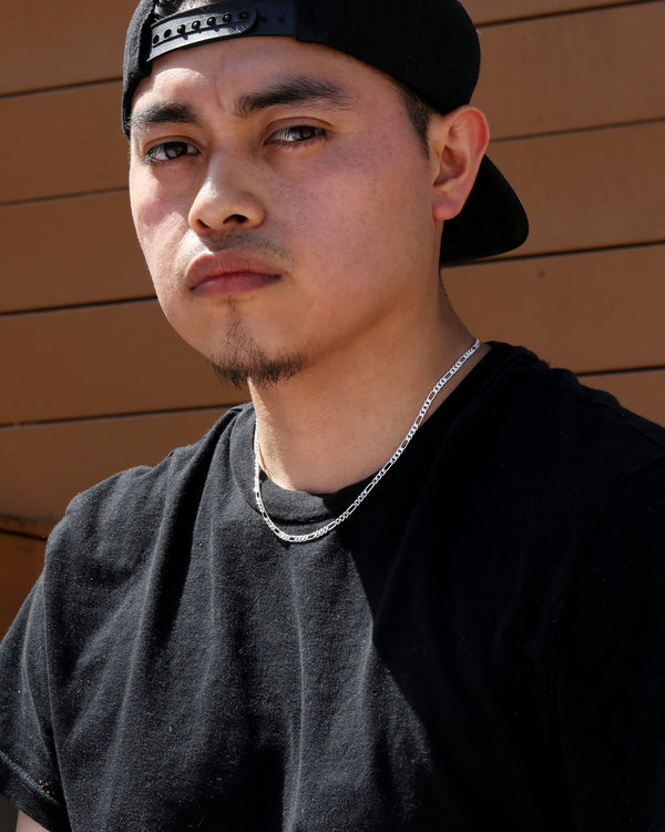 •Link - Figaro•Width: 3mm -This chain is very thin and ideal for Ladies.•Length: 18" INCH •Closure: Lobster clasp •Plating: 925 Silver Plated The piece is "925 Silver" polished for the quality...