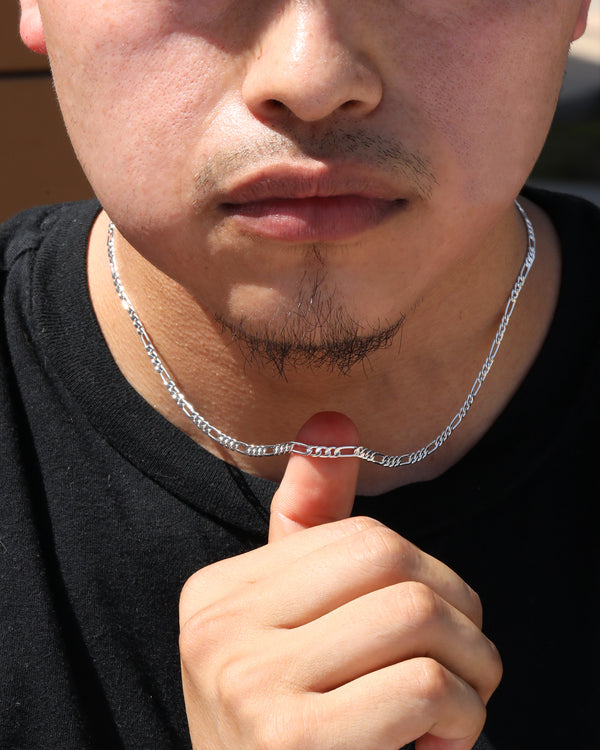 Figaro Link Choker Chain 18" Inches 3mm / 925 Silver Plated