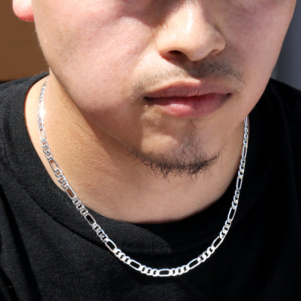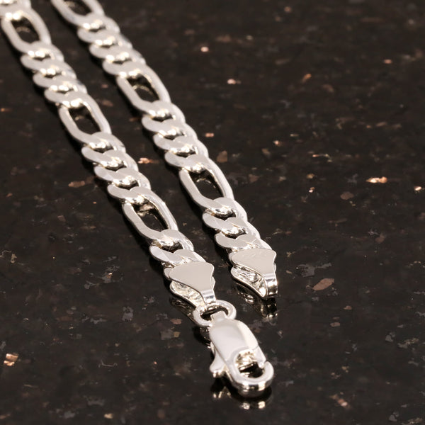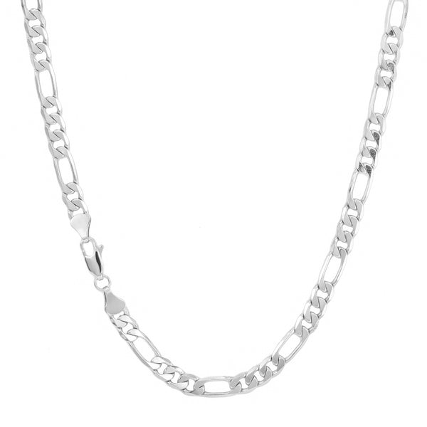 •Link - Figaro•Width: 5mm -This chain is very thin and ideal for Ladies.•Length: 18" INCH •Closure: Lobster clasp •Plating: 925 Silver Plated The piece is "925 White gold" polished for the...