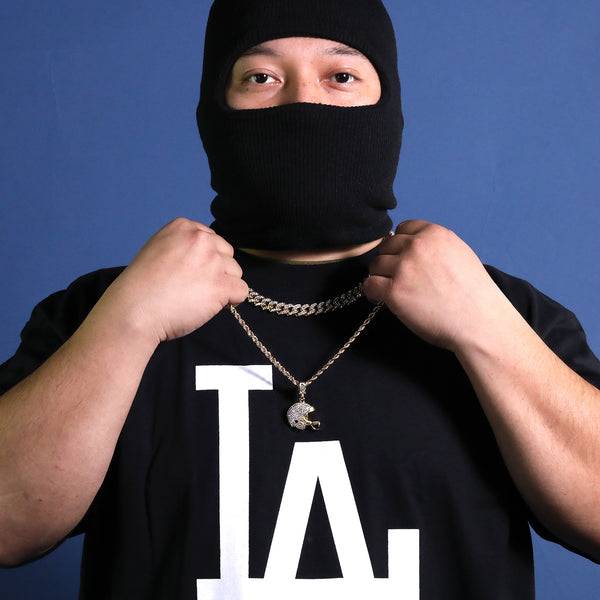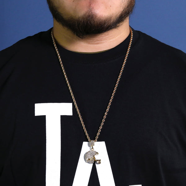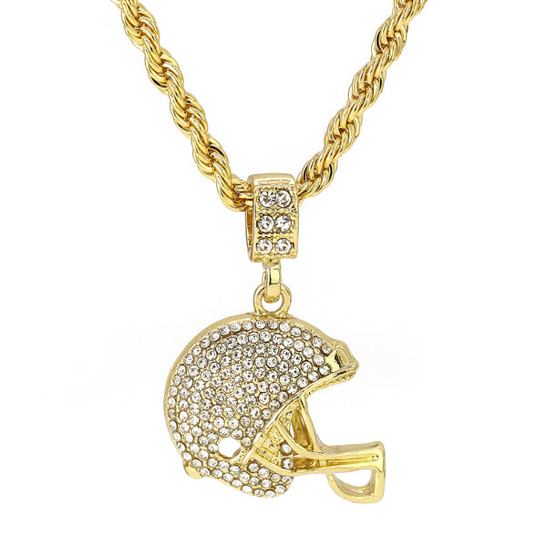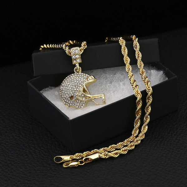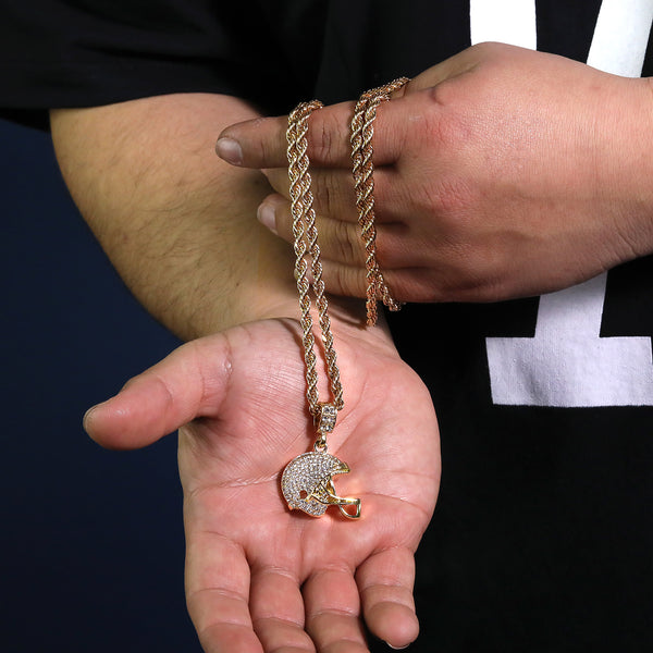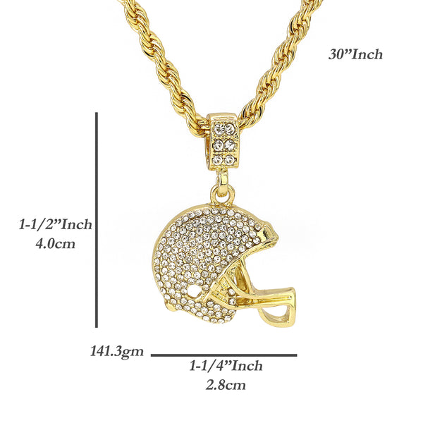 Football Helmet Pendant 30" Rope Chain Hip Hop Style 18k Gold Plated