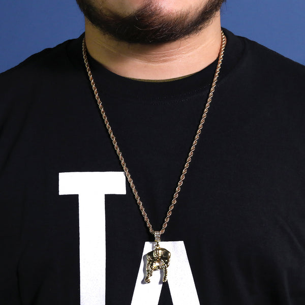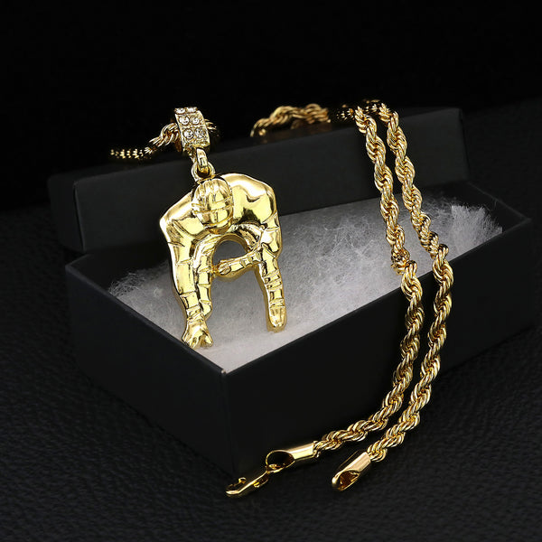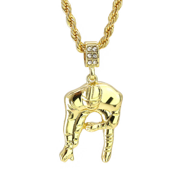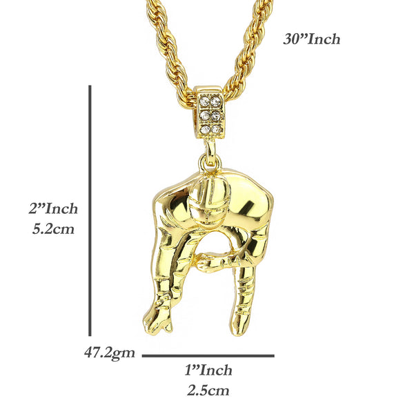 Football Quarterback Pendant 30" Rope Chain Hip Hop Style 18k Gold Plated