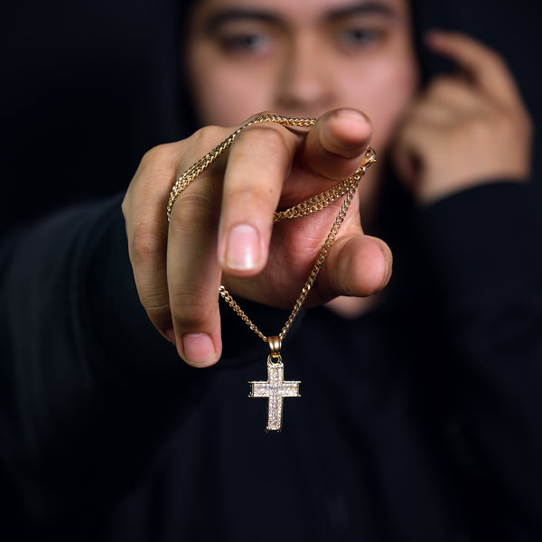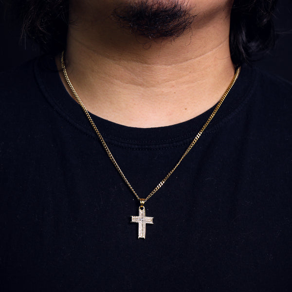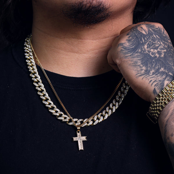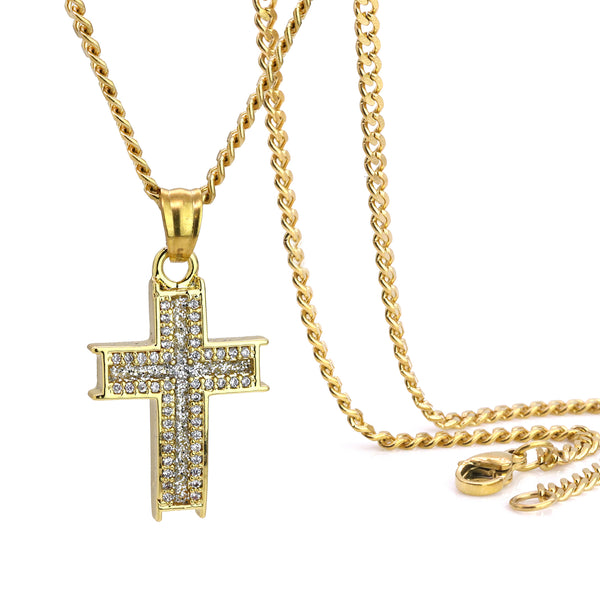 Forked Cross Pendant 24" Cuban Chain Hip Hop Style 18k Gold Stainless Steel