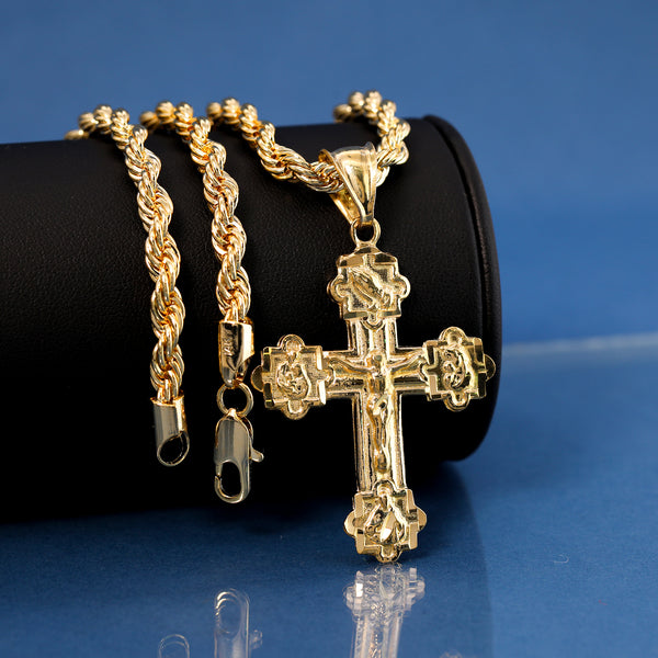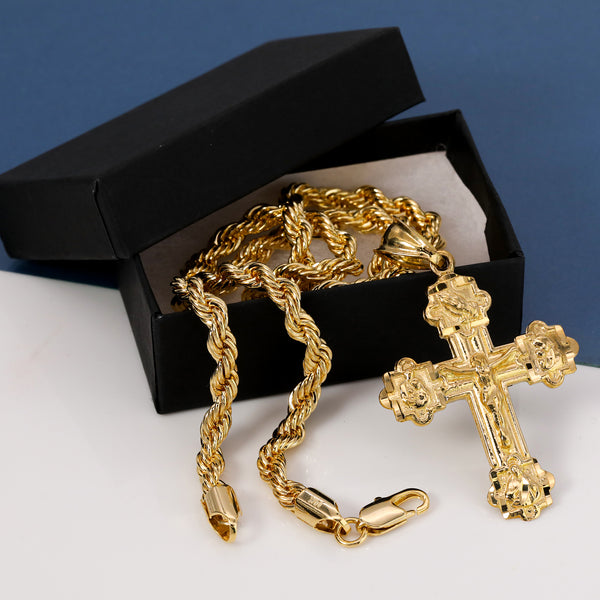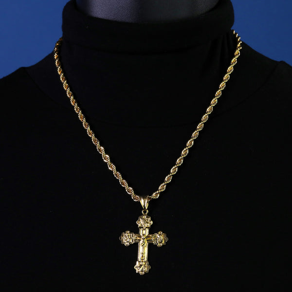 Four Prayers Cross Pendant Rope Chain 14k Gold Plated