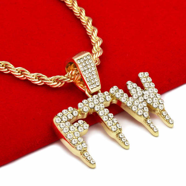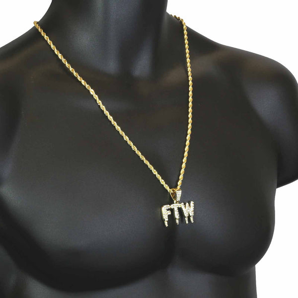 DRIP FTW PENDANT WITH GOLD ROPE CHAIN