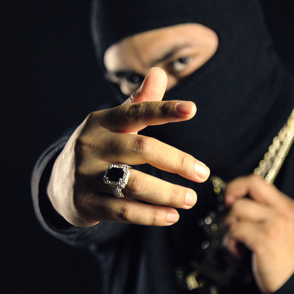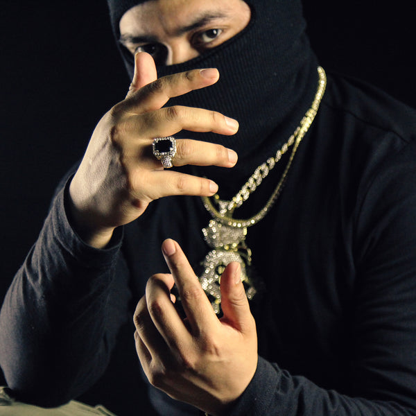 Fully Iced Black Ruby Ring 14k Gold Plated