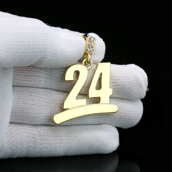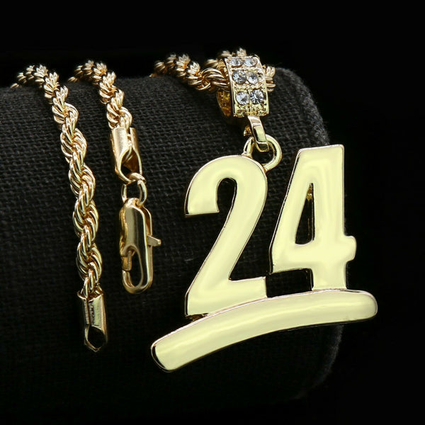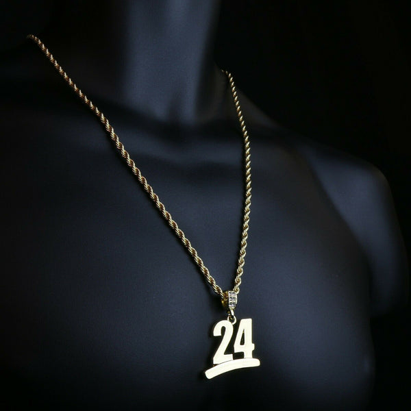 Gold #24 Jump Man Basketball Pendant with Rope Chain