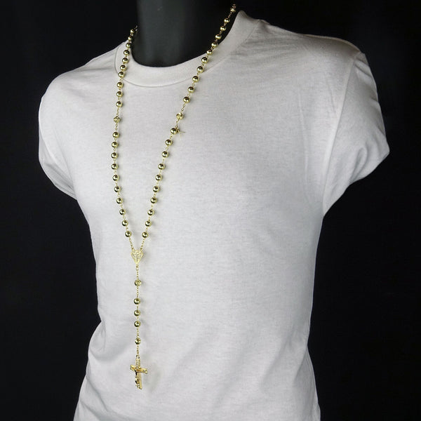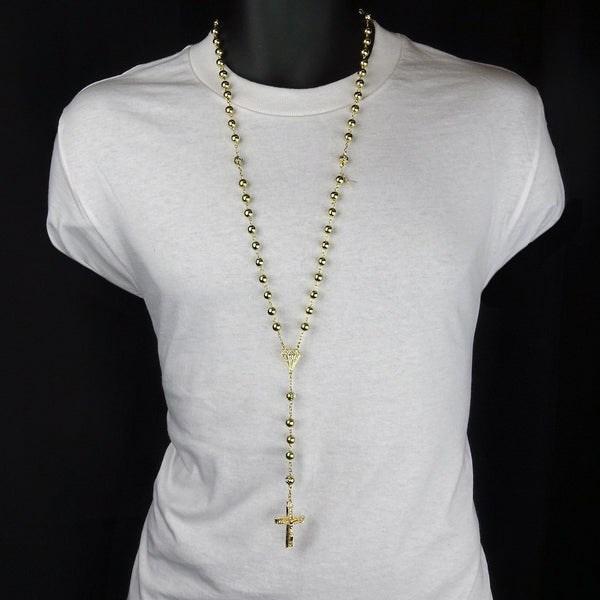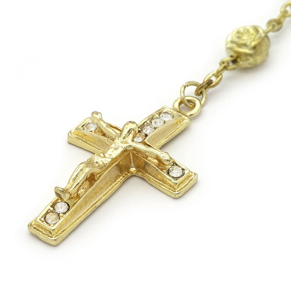 Gold Crystal Beads Rosary With D-Shape & Cross Pendants Fashion Religious Jewelry Necklace that fit for all, Men, Women, Boy or Girl Each Bead of the Necklace is Carefully checked Before...
