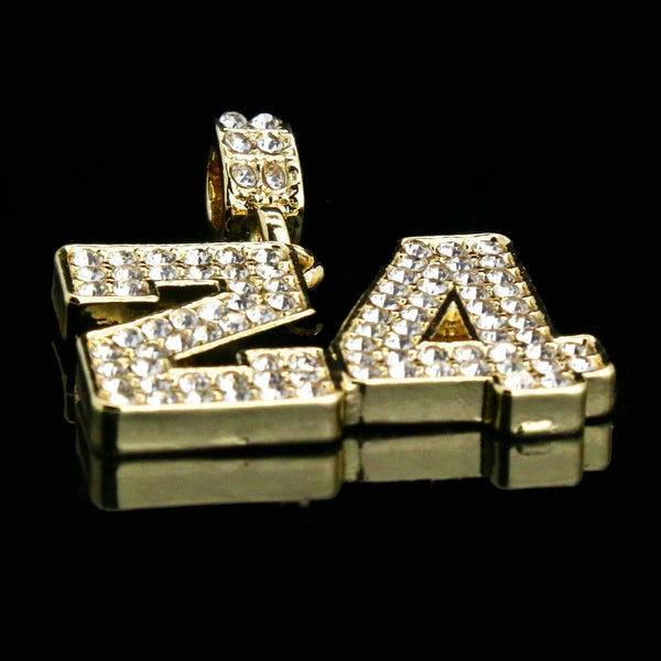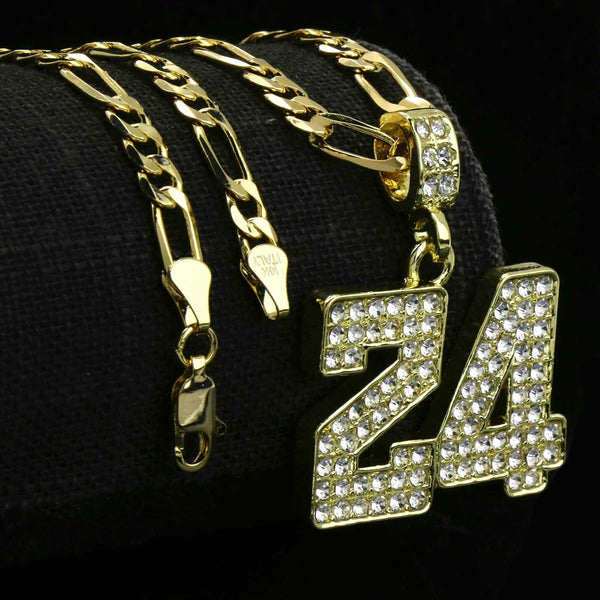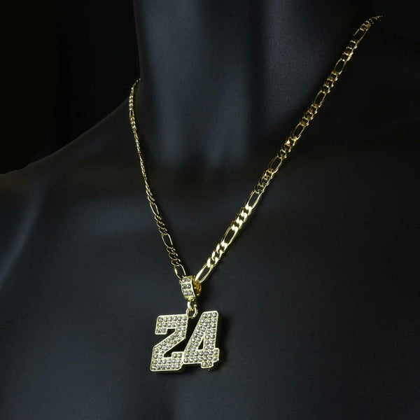 Gold Fully CZ #24 Jump Man Basketball Pendant with Figaro Chain