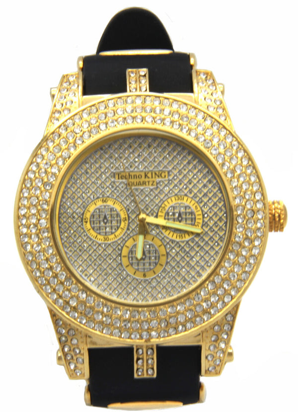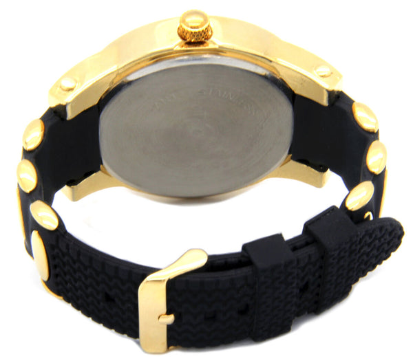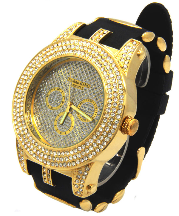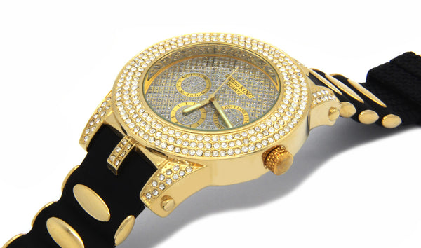 Gold Ice Out Ice KIng Silicone Band Watch