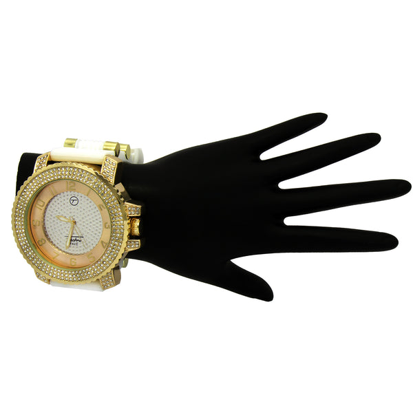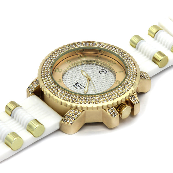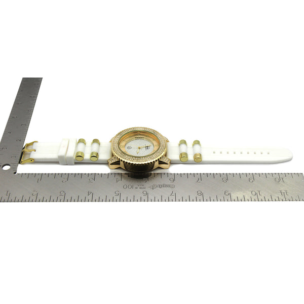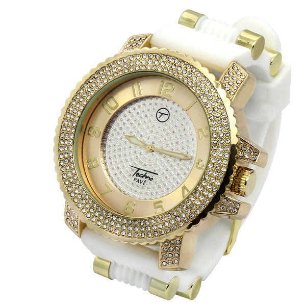 Gold Techno Pave White Silicone Band Watch