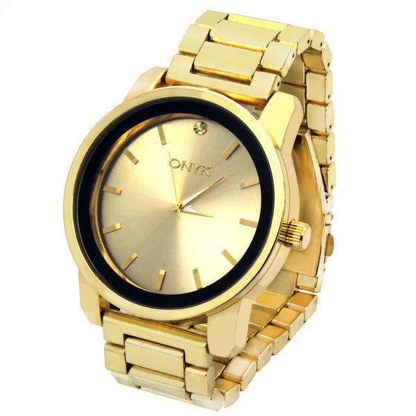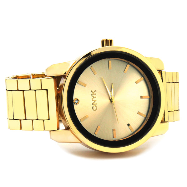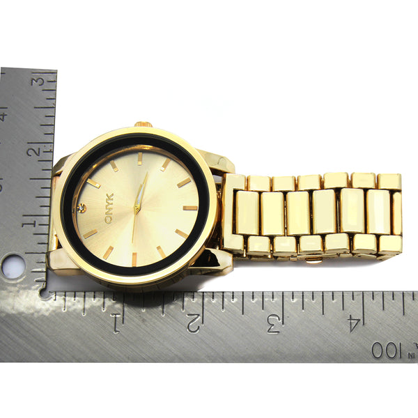 Gold ONYK Single Stone Metal Band Watch