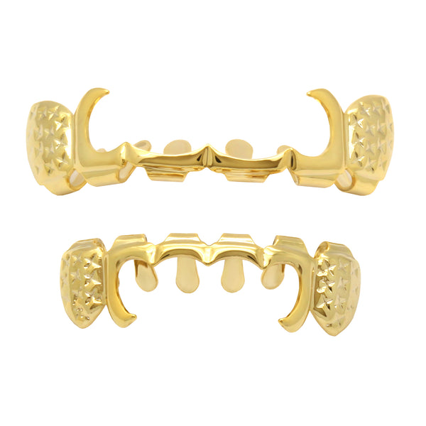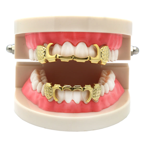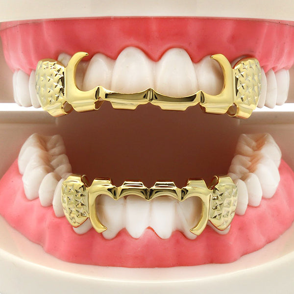 You will receive Top and Bottom Grillz as a set.These Sickle Fang  provides a vampire Look with the half teeth exposed. Each grillz includes a silicon mold wax alongside a...