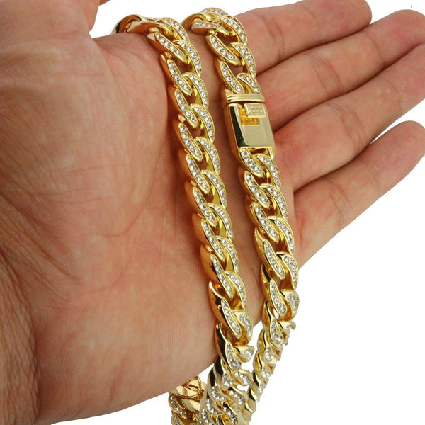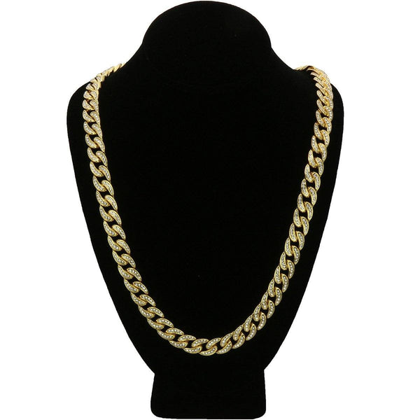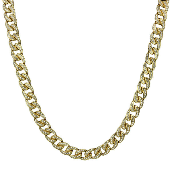 This is Premium Iced Out Cuban Link Chain Featuring Super Quality Real Gold Plating with Shiny Bling Stone Hand Set individually On Top of the Chain. Elegant Cuban Gold Plated...
