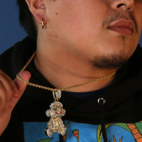 This is 14k Gold Plated Young Baby Never Broke Again 38 Pendant hanging from a 24" Rope chain with a beautiful set of Gold Stainless Steel Thin EarringsĀ . Each and...
