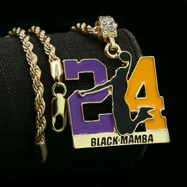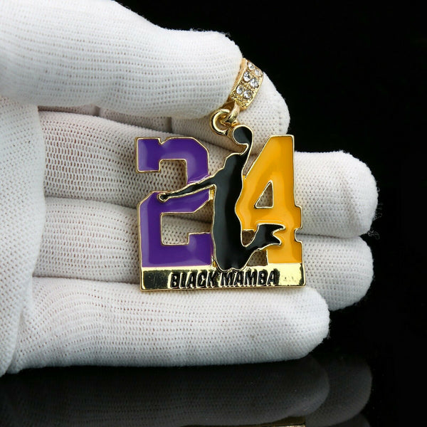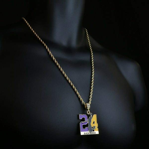 Gold / Purple #24 Jump CZ Man Basketball Pendant with Rope Chain