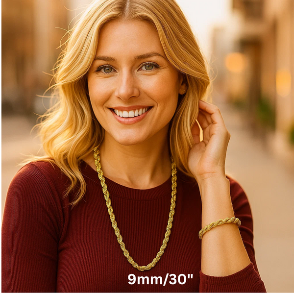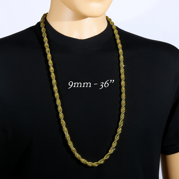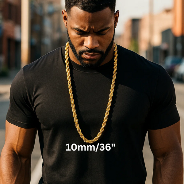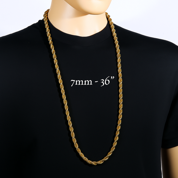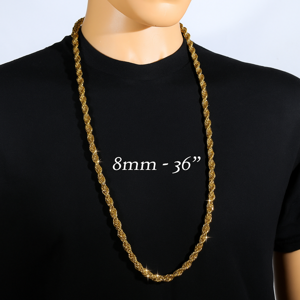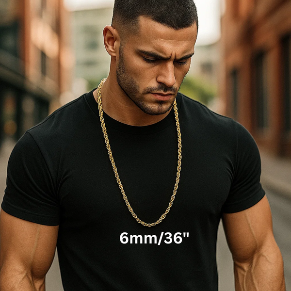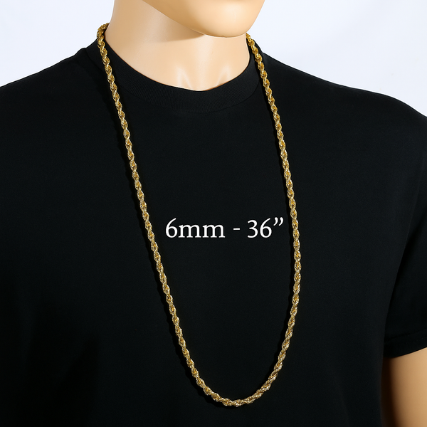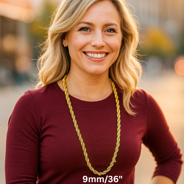 Chain Origin: China, Stamp: NO, Plating: Faux Gold, Size: 6mm-10mm/36" Elegant Rope Gold Plated Necklace – Timeless Luxury & Everyday Strength Elevate your jewelry collection with this 24K gold plated...