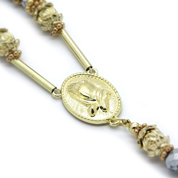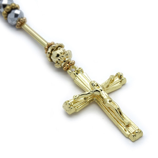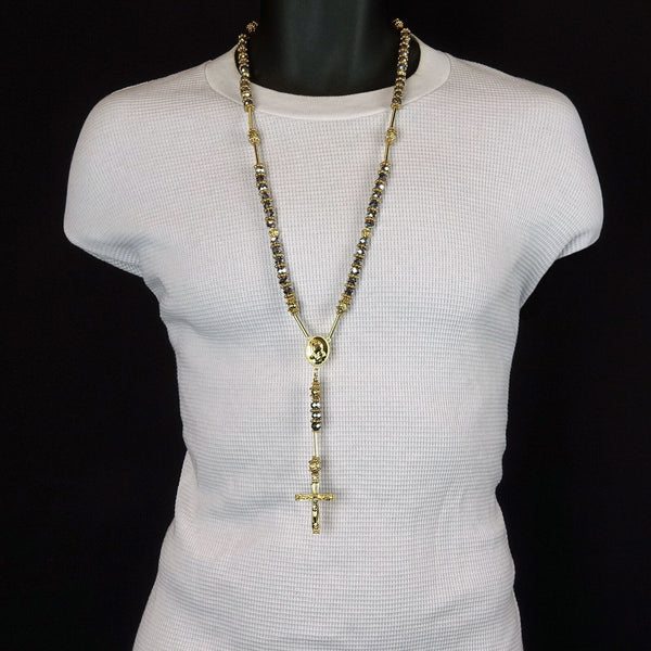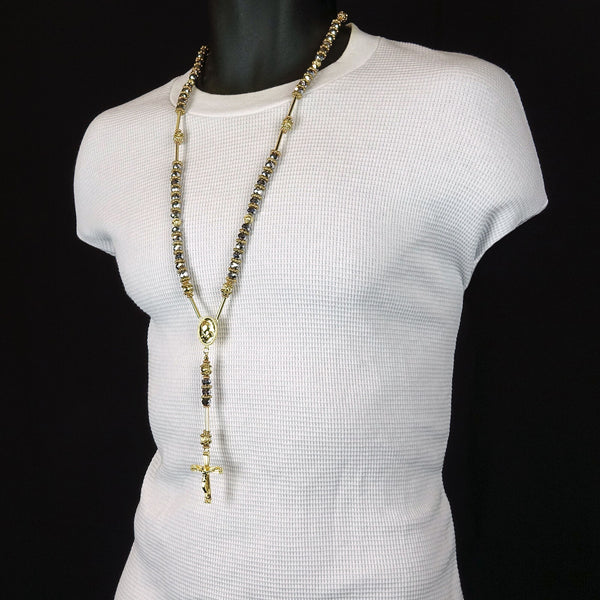 Gold gray Crystal Beads Rosary With PRAYER & Cross Pendants Fashion Religious Jewelry Necklace that fit for all, Men, Women, Boy or Girl Each Bead of the Necklace is Carefully checked...
