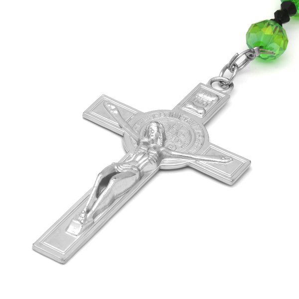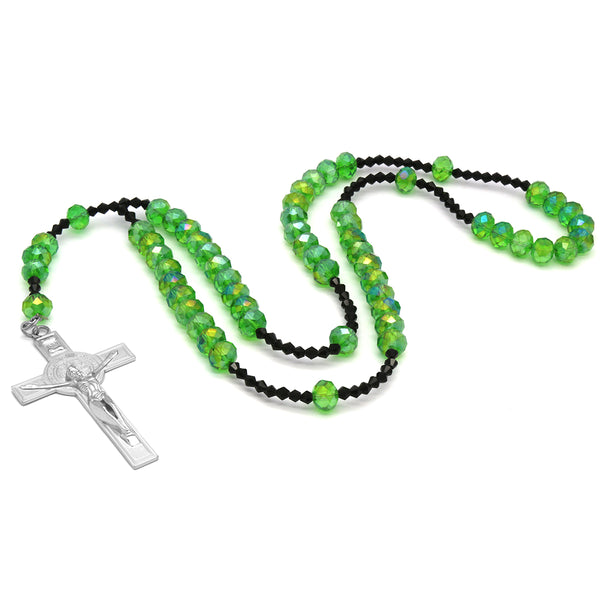 Green/Black Crystal Beads Rosary With Jesus Middle & Cross Pendants Fashion Religious Jewelry Necklace that fit for all, Men, Women, Boy or Girl Each Bead of the Necklace is Carefully checked...