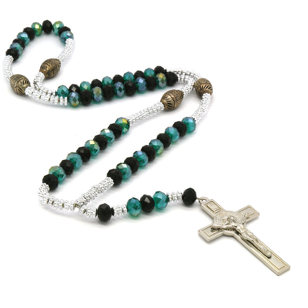 Green/Black Crystal Rosary With Cross Pendant