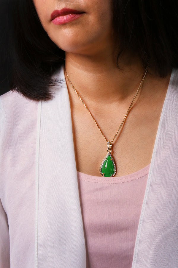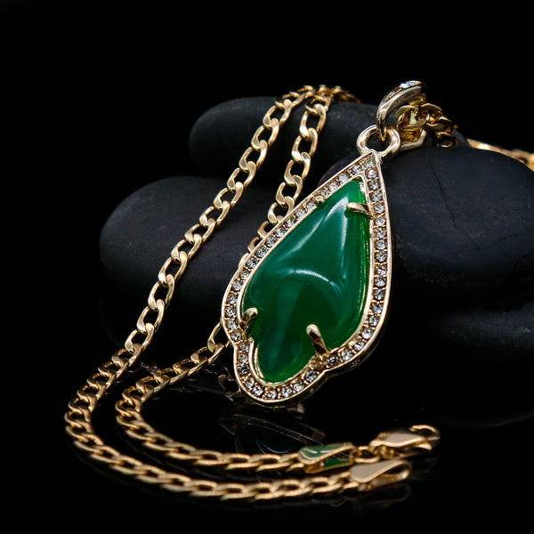 Green Curved Tear Women's Jade Chain Pendant Necklace