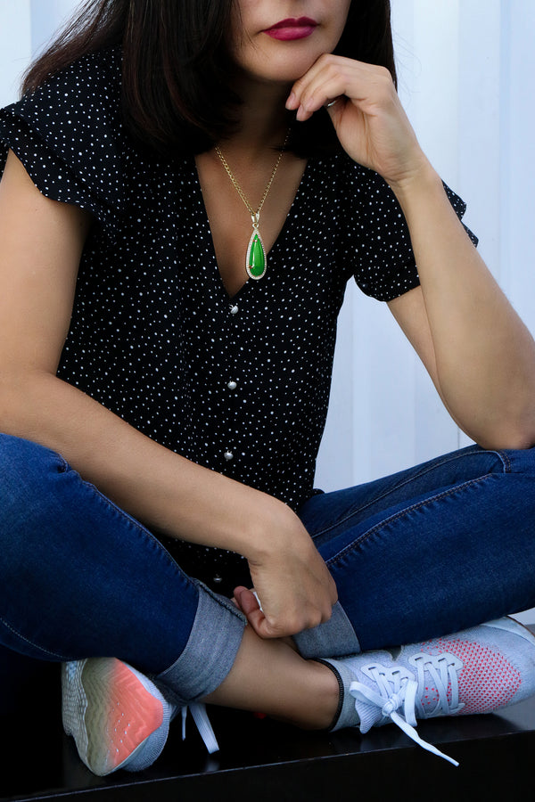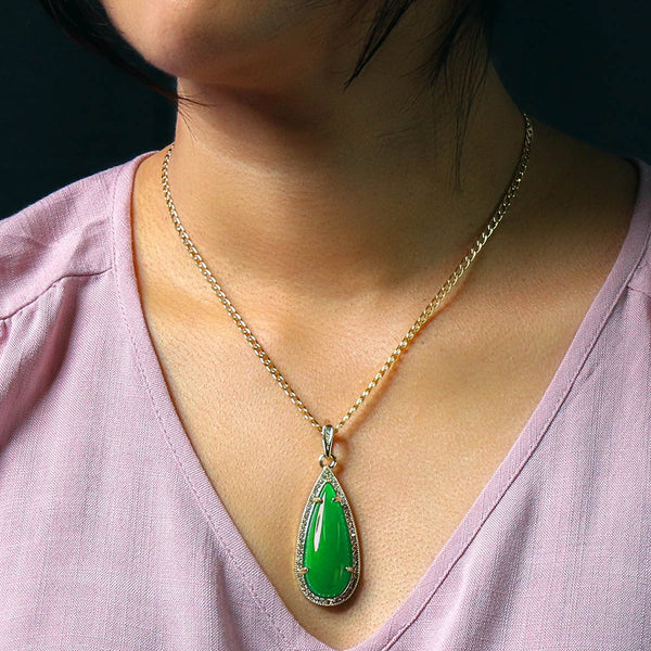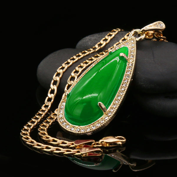 Green Tear Women's Jade Cuban Chain Pendant Necklace