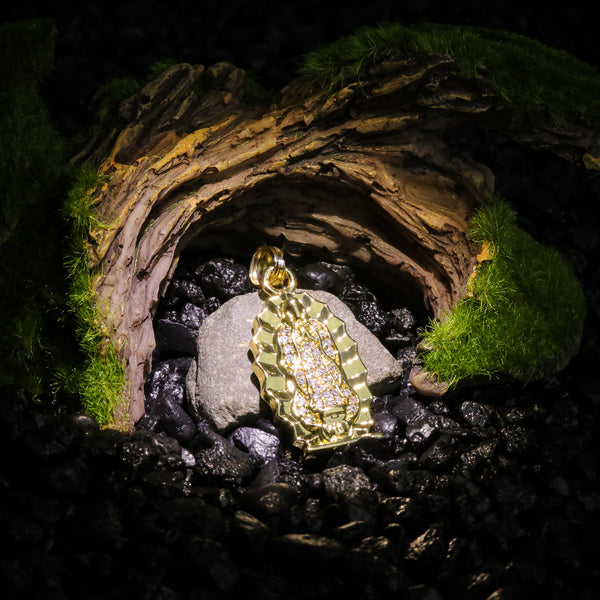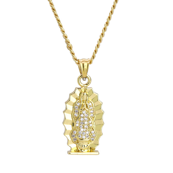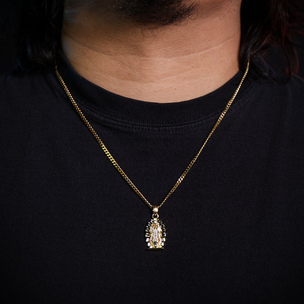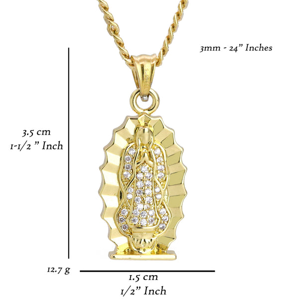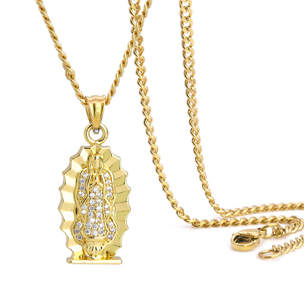 Guadalupe Virgin Pendant 24" Cuban Chain Hip Hop Style 18k Gold Stainless Steel