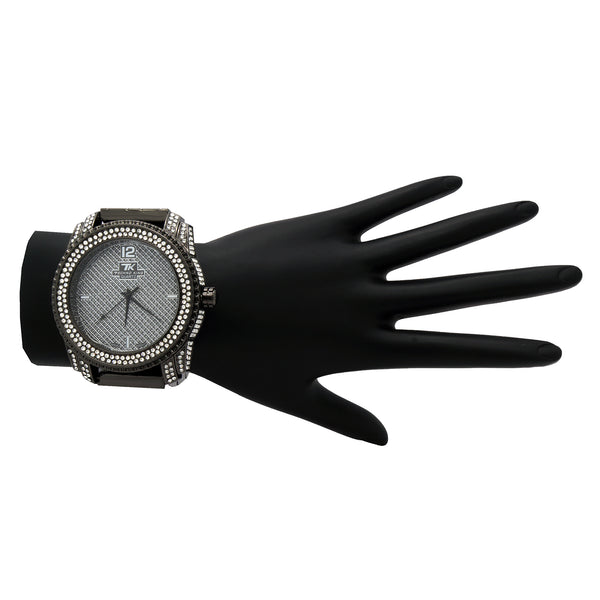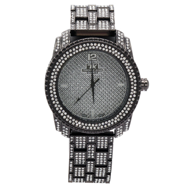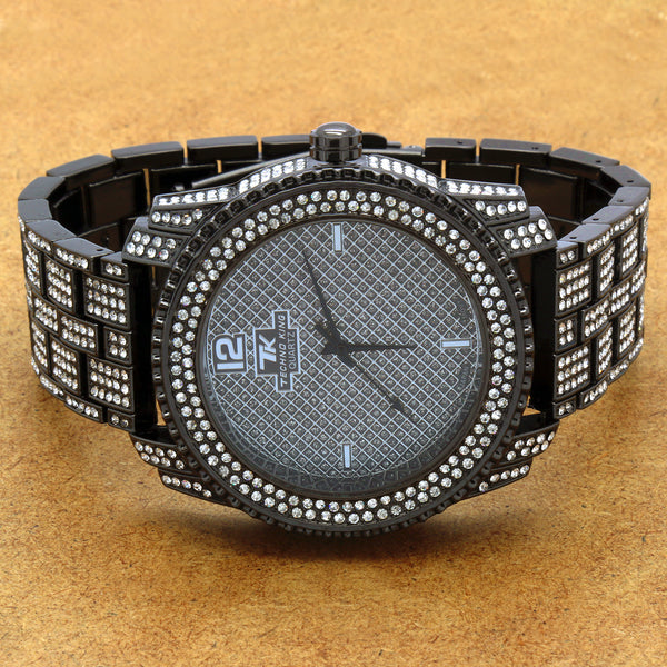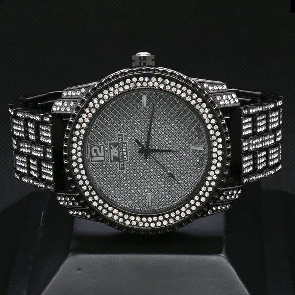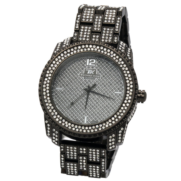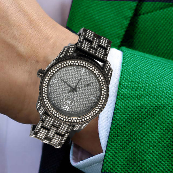 Techno King™ Bling Fully Iced Metal Band Wrist Watch Big Size Face Diameter: 45mm Thickness:10mm Lab Diamond Rolex Looking Design Stylish and trendy with scratch resistant mineral glass Bling Iced out bezel...