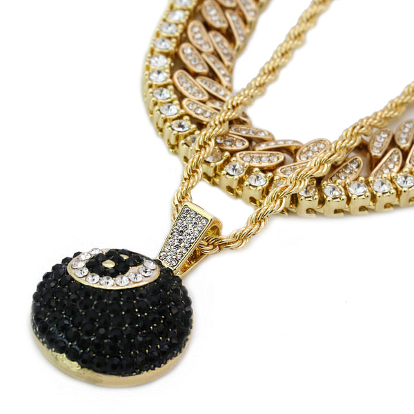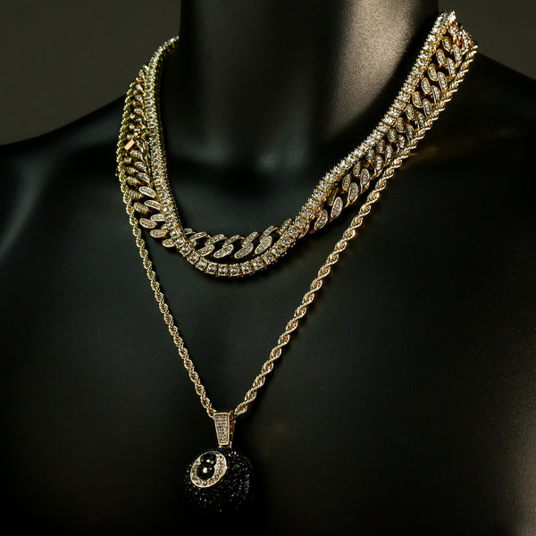 High Fashion Gold Plated 20" Fully Cz Cuban Tennis Chains & #8 Ball Pendant