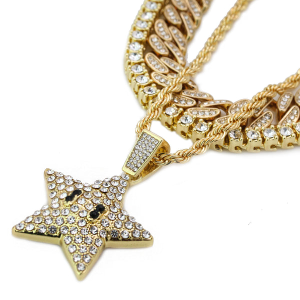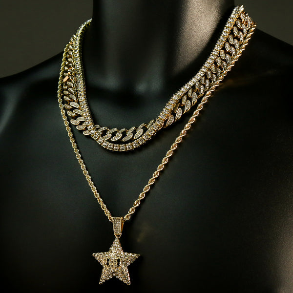 High Fashion Gold Plated 20" Fully Cz Cuban Tennis Chains & Cartoon Pop Star Pendant