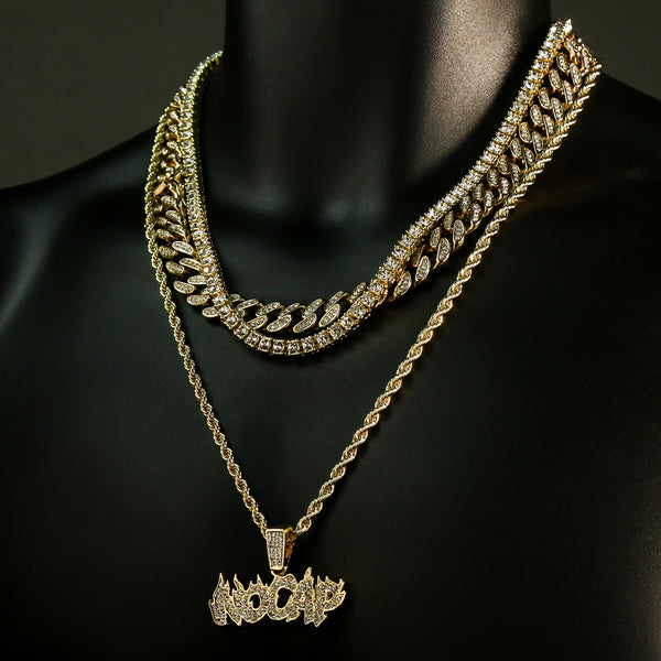 High Fashion Gold Plated 20" Fully Cz Cuban Tennis Chains & No Cap Pendant