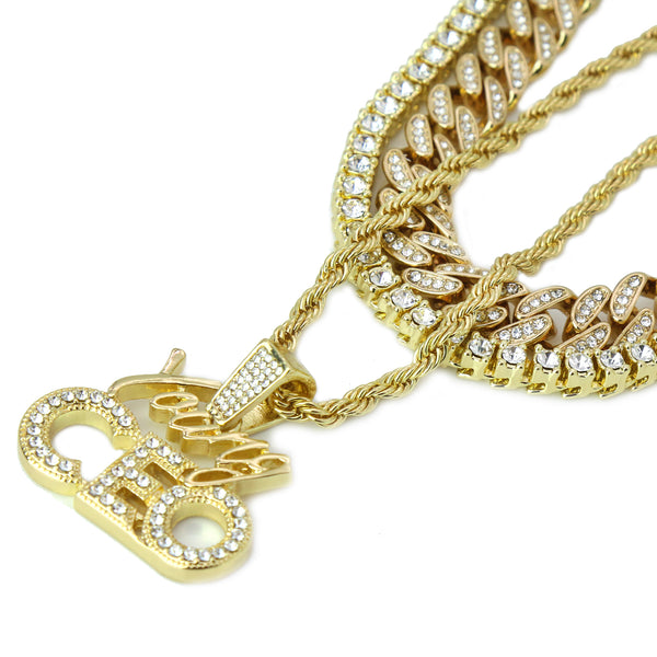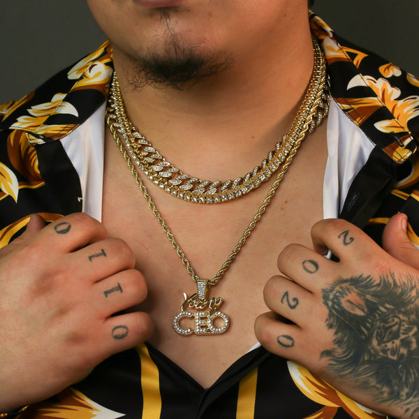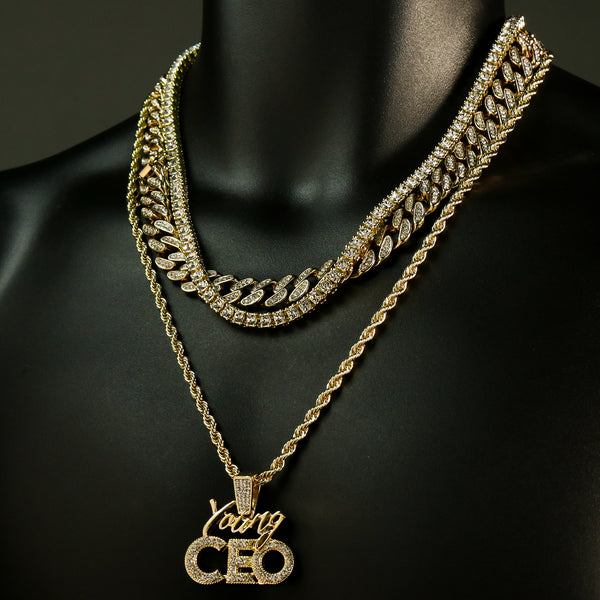 High Fashion Gold Plated 20" Fully Cz Cuban Tennis Chains & Young CEO Pendant