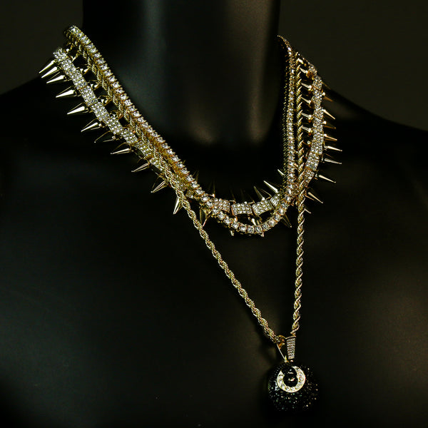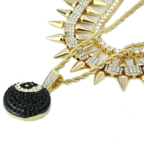 High Fashion Gold Plated AAA Spiky Chain Tennis Chains & Cz #8 Ball Pendant