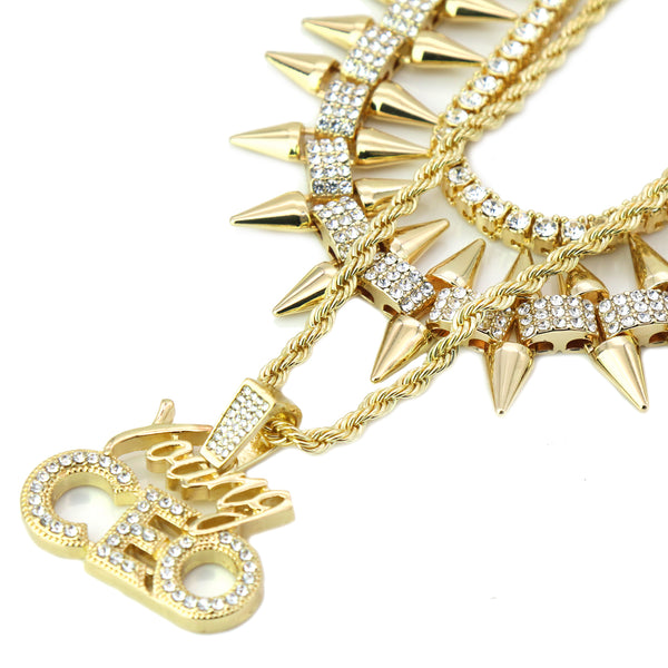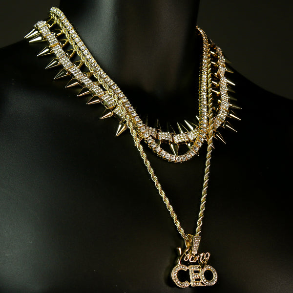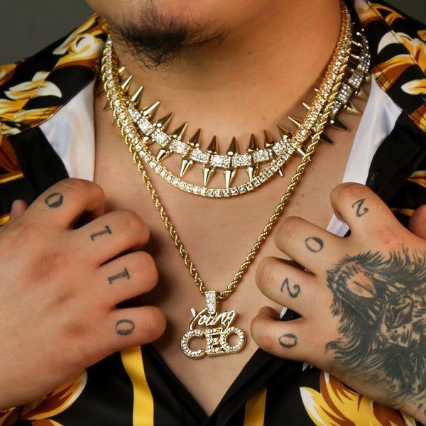 High Fashion Gold Plated AAA Spiky Chain Tennis Chains & Cz Young CEO Pendant