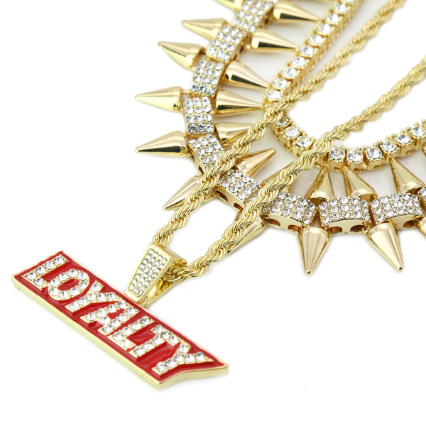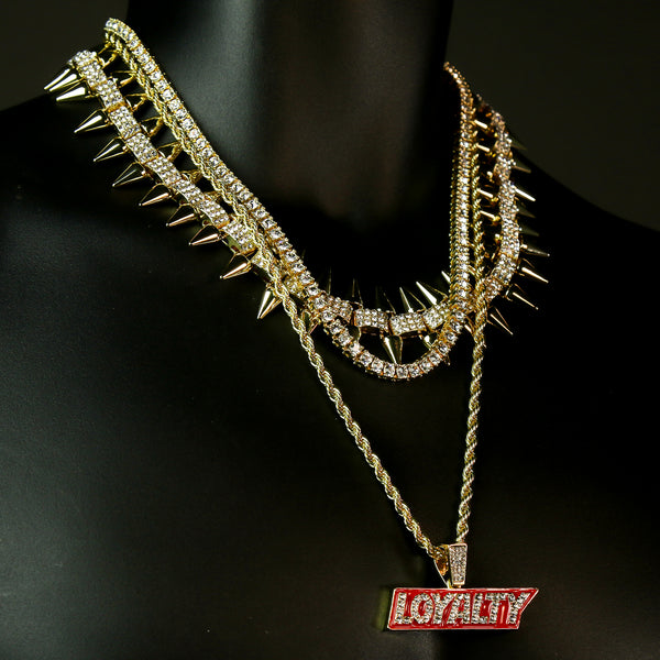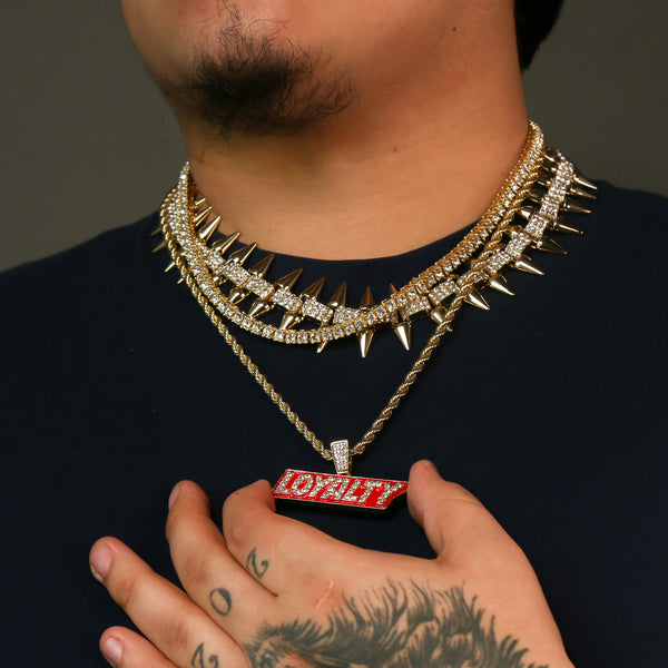 High Fashion Gold Plated AAA Spiky Tennis Chains & Cz Loyalty Block Pendant