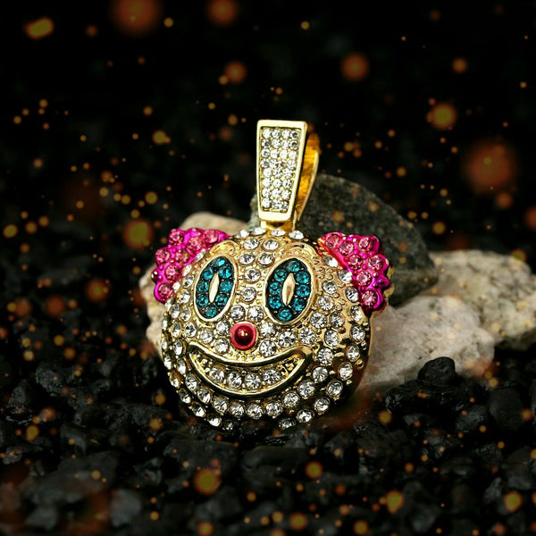 High Fashion Gold Plated AB 2 Row Cuban Tennis Chains & Cz Clown Head Pendant