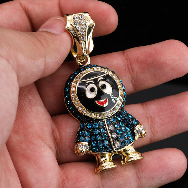 Hip Hop Fully Iced Small Gold Plated Brick Squad Eskimo Pendant & Cuban Chain Necklace 18"- 24"