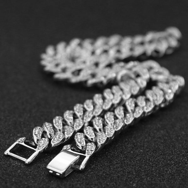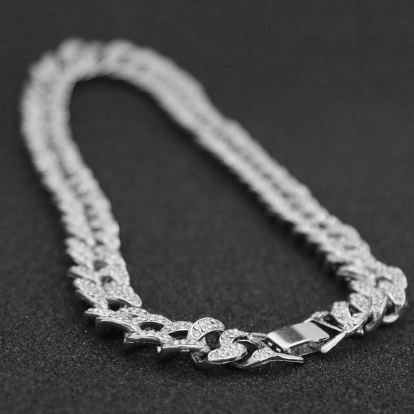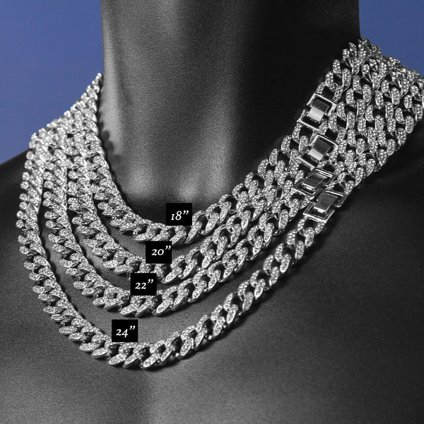 Hip Hop Fully Iced Small Silver Plated BRICK SQUAD ESKIMO Pendant Cuban Chain 18 - 24"