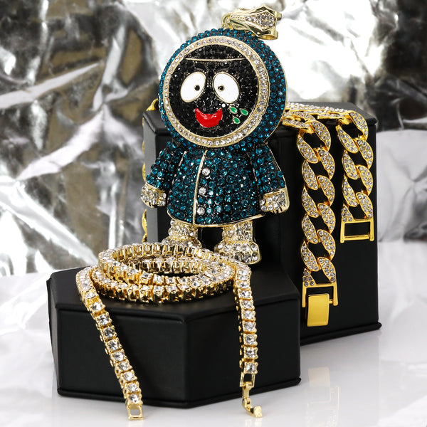 Hip Hop Iced Large BRICK SQUAD ESKIMO Gold Plated 20", 20" Cuban & Tennis Choker Chains
