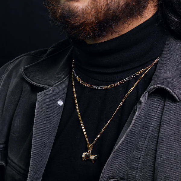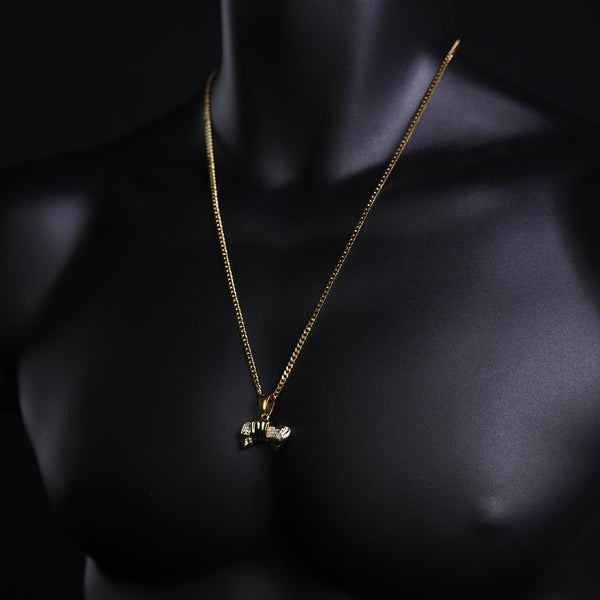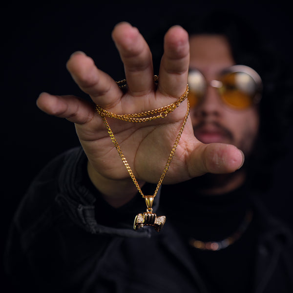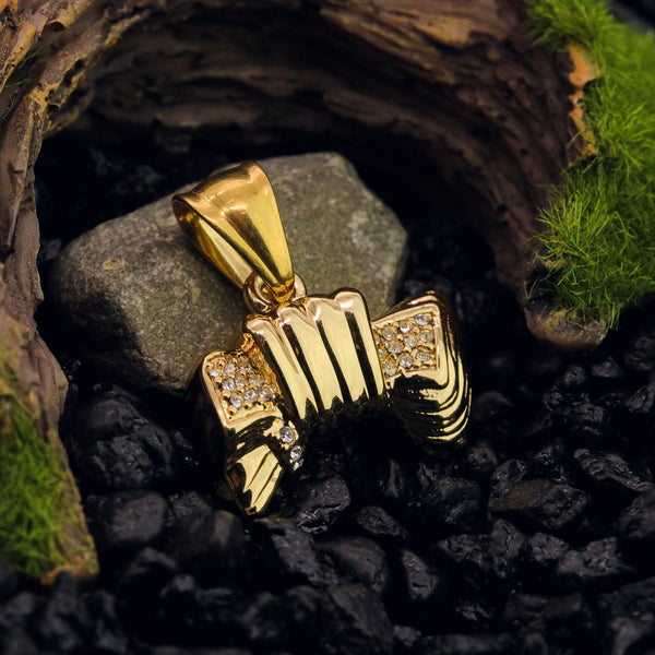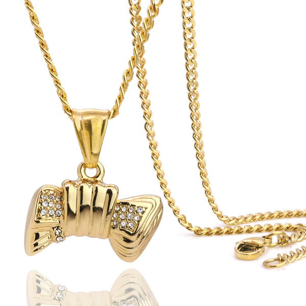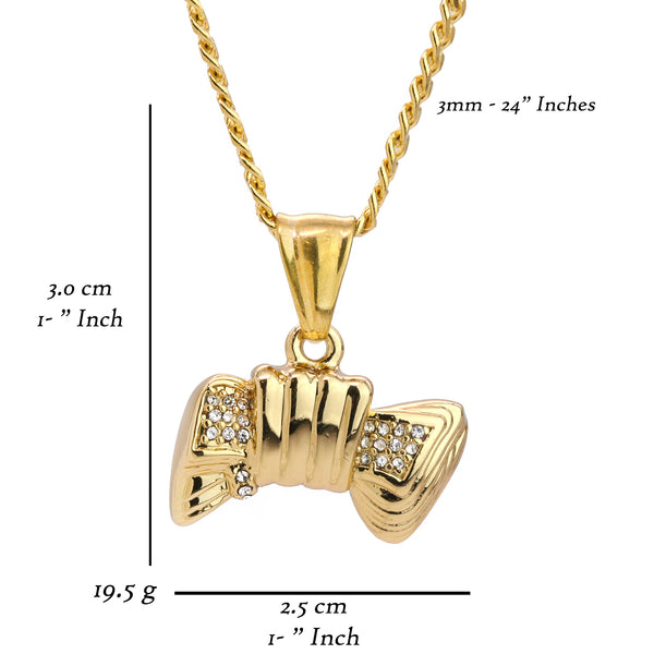 Iced Bowtie Pendant 24" Cuban Chain Hip Hop Style 18k Gold Stainless Steel