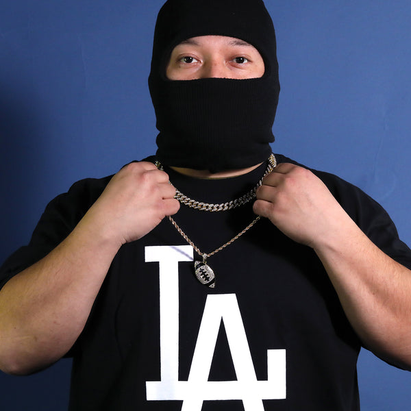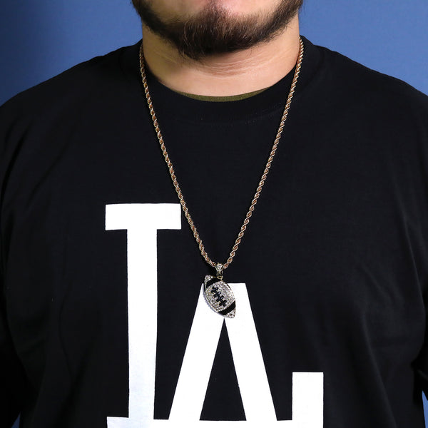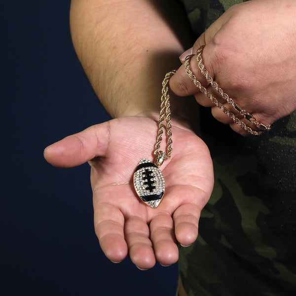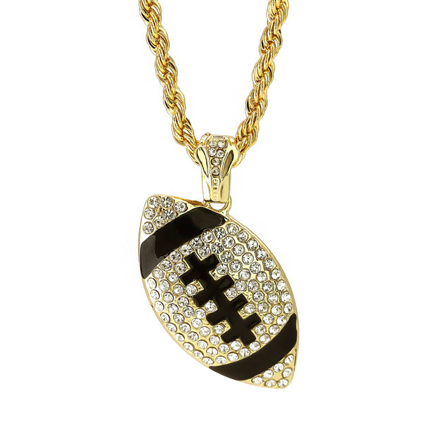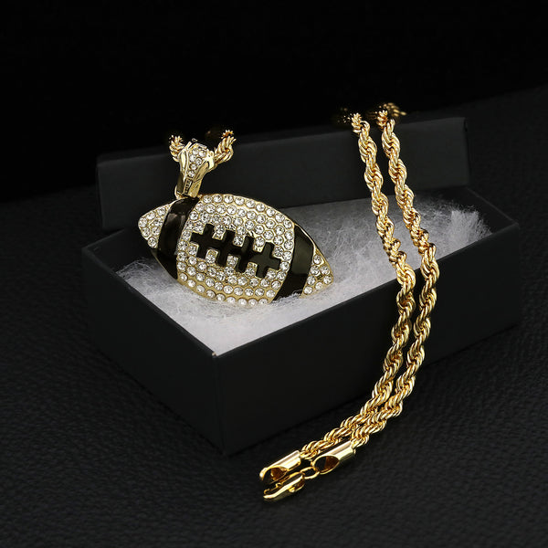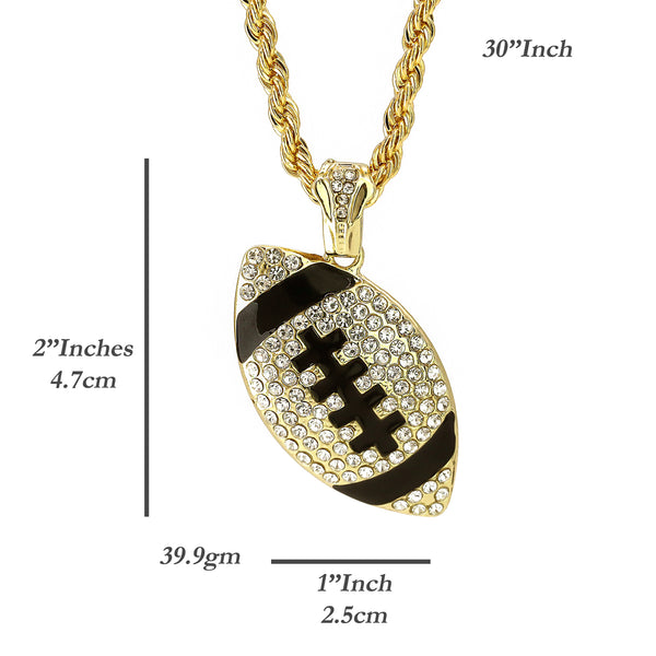 Iced Football Pendant 30" Rope Chain Hip Hop Style 18k Gold Plated