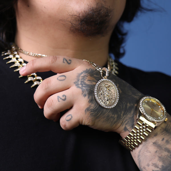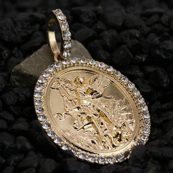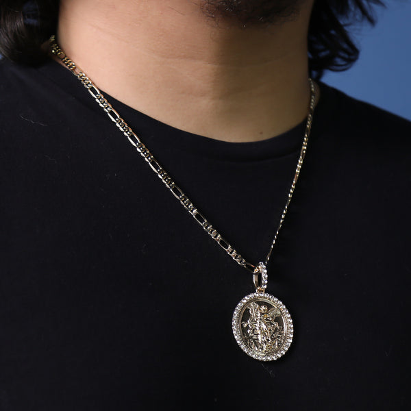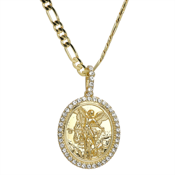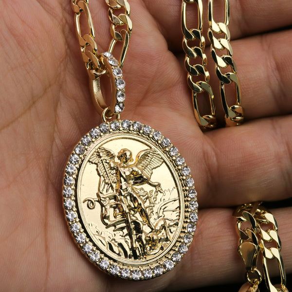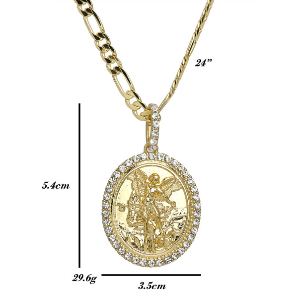 Iced Religious Angel Michael Pendant 24 Figaro Chain Hip Hop 18k Jewelry Necklace